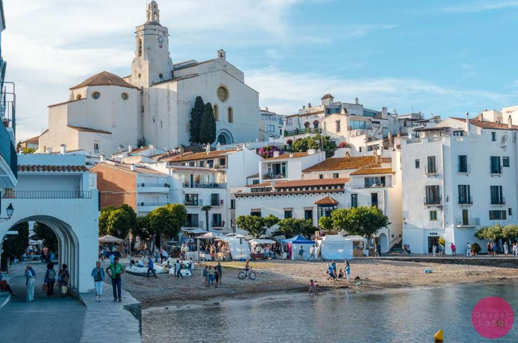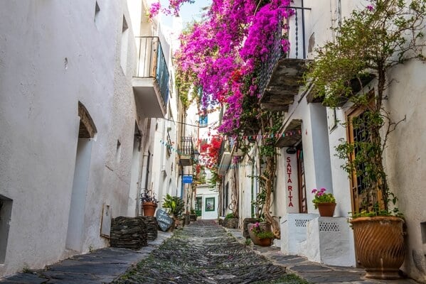 Cadaqués’ old town has narrow cobbled streets and white houses. Above the outline of the town, you will find the church of Santa María, a carefully restored church with a white façade stands out.
